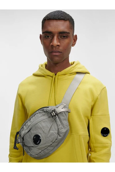 C.P. Bedrijfstassen .. Gray Black Nylon B Crossbody Pack van C.P. Bedrijf met verstelbare riem, zip -compartimenten, logo voor lens en waterbestendige stof.