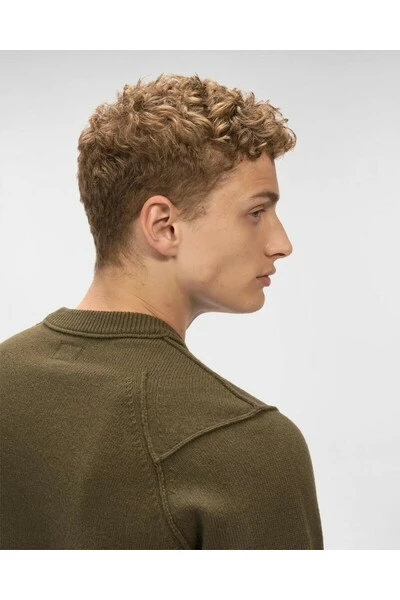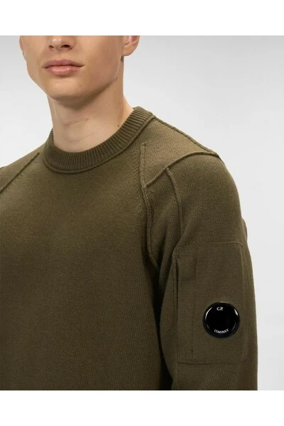 Deze trui is uitgerust met een klassieke ronde nek en een dikke kustranden aan de kraag, polsen en de zoom. Het detail in de vorm van een bril Glas C.P. Bedrijf verbetert de zak op de mouw. Model gebreid in onze hoog -end lamswol met lichtheid, isolatie en zachtheid.