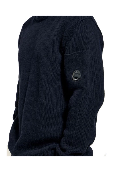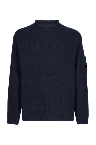 Shirt met lange mouwen met brede nek in zwarte lambswool. Het beschikt over een pocket met CP Company Lens -details op de linker mouw en geribbelde versieringen.