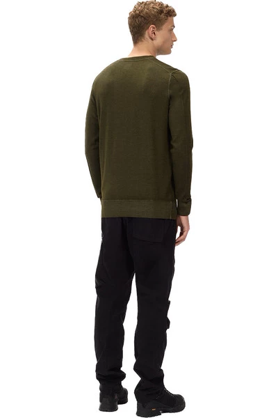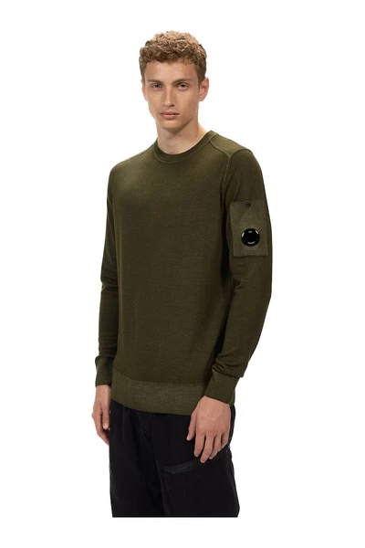 C.P. Company, Merino Round with Lens, Oliv C.P. Bedrijf 13CMKN245A 003247F Crew Neck Fast Gyed Merino Ivy Green Classic Circulaire Dachics gemaakt van hoog -kwaliteit, kleur -recht merinowol voor optimale warmte en comfort, met ribontwerp op manchetten en zoom en een C.P. Bedrijfslens detail op de mouwtas. Kleurkleurig ribontwerp op manchetten en zoomhuls met linzen details buiten weefsel: 100% wollen vuur s kleur: