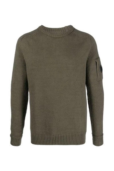 C.P. Bedrijf truien Green logo-plaque gebreide trui van C.P. Bedrijf met kaki, katoenen blend, logo -plaquette, bemanningsnek, lange mouwen, geribbelde manchetten en geribbelde zoom.