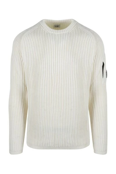 Crewneck Jumper door C. P. Company, in geribbelde wolmengsel. – Regelmatige fit – Crewneck – C.P. Bedrijfslens en zak met zip op de linker mouw – geribbelde manchetten en bodem – gemaakt in Moldavië – 60% wol, 40% acryl