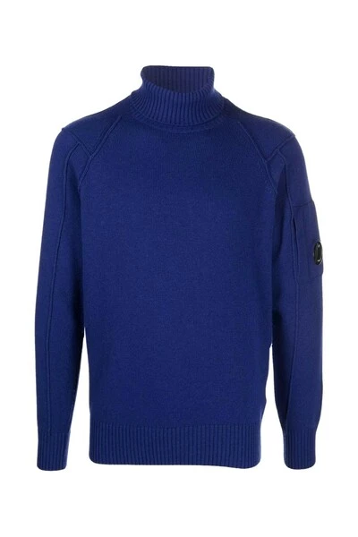 logo-place trui met rolkraag zwart wolmix logopatch op de mouw rolkraag lange mouwen rechte zoom