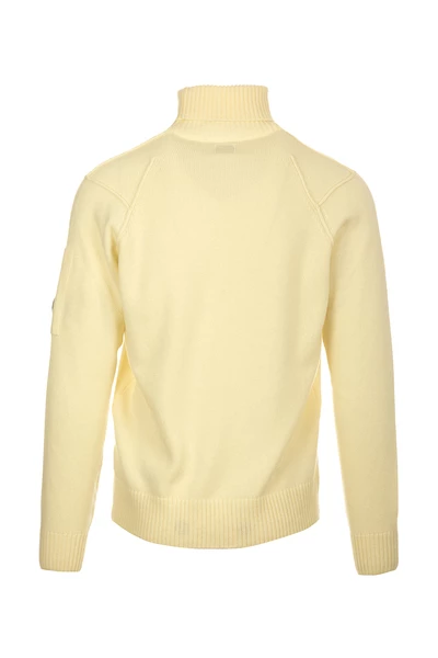 C.P. Bedrijf Sweaters witte lambswool coltrui trui ribbelde kraag, onderkant en manchethuls met lens