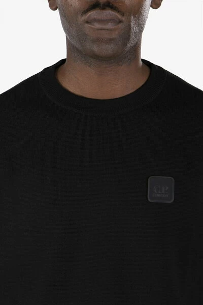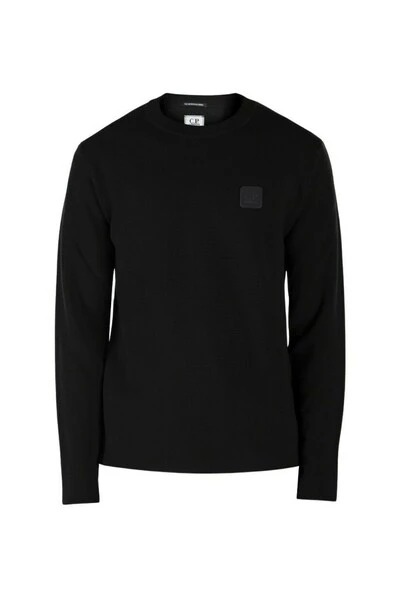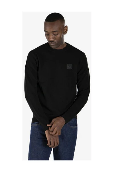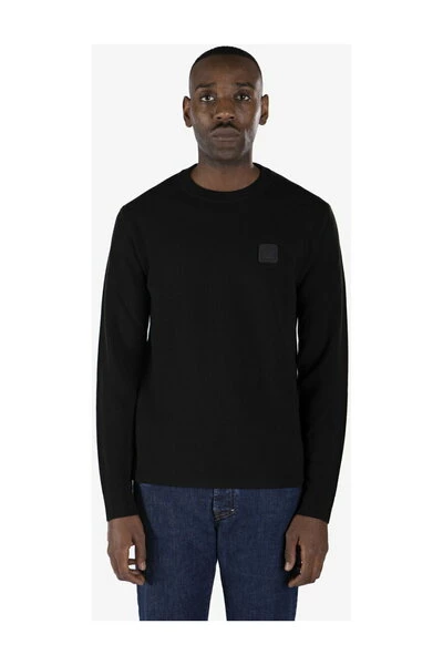 Black Sweater van de bemanning, gemaakt met een dun gebreid woolwerk, met logo op de borst. Snelle kleurstof geeft een complete en gene kleur aan dit kledingstuk. Normale pasvorm. Het model is 1,90 m hoog en draagt ​​de TG. 50.