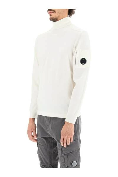 Wool Blend Turtleneck -trui met geribbelde details, verrijkt door een pocket van een mouw met kenmerkende C.P. BEDRIJF LENS APPLIQUE. Binnenstebuiten naden op de schouders, regelmatige pasvorm. Het model is 187 cm lang en draagt een maat IT 48.