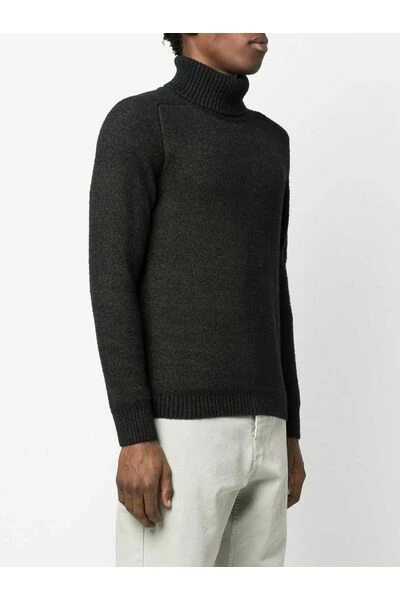 C.P. Bedrijf Sweaters Green Logo-Patch Roll-Neck Jumper van C.P. Bedrijf met donkergroene, wollen mix, kenmerkende lensdetail, rolhals, lange mouwen en geribbelde zoom.