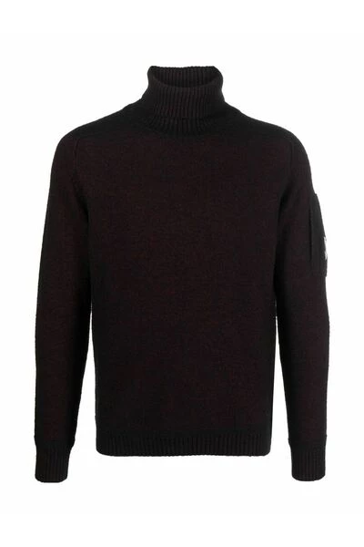 C.P. Company Sweaters Purple Lens-Detail Roll Neck Jumper van C.P. Bedrijf met dikke geribbelde gebreide, kenmerkende lensdetail, mouwzipzak, rolhals, lange mouwen en violet paars.