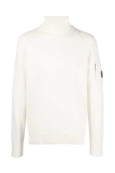 CP Company Sweaters Witte lens-verstrikte roll-neck trui van C.P. Bedrijf met witte, wollen mix, fijn gebreide, kenmerkende lensdetail, lange mouwen, mouwen met een gemonteerde manden, geribbelde trim en rechte zoom.