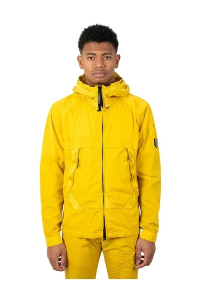 Jas met capuchon, twee zijzakken met ritssluiting en logo op de zijmouw.