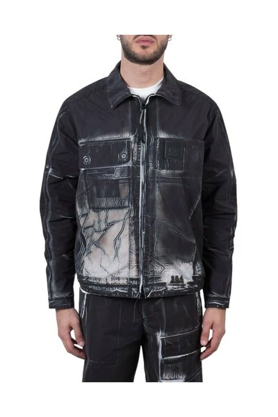 Herenoverschot met een functioneel ontwerp met de klassieke snij halsband van CP Company. Tracerly -model gekenmerkt door extern afdrukken en gemaakt van memri, een dichte plotstof in polyester en nylon microvezel.