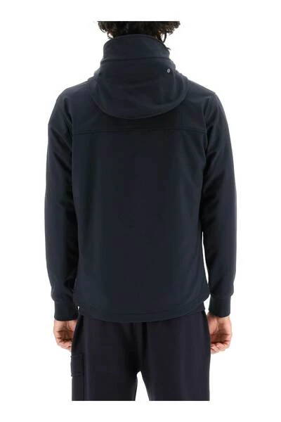 C.P. Bedrijfsjack in C.P. Shell-R, een stretch softshell-stof gemaakt met gerecycled polyester, verrijkt door een intern weer-resistent membraan. Verhoogde kraag met iconische verstelbare brilkap, tweerichtingszipafsluiting, twee ritszakken, stretch jersey manchetten, elastische trekkoord op de binnenste zoom. Fleece voering, een binnenzak. Het model is 187 cm lang en draagt een maat IT 48.