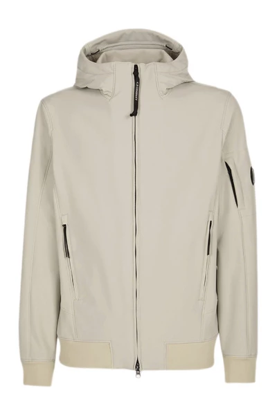 C.P.Company Coats Beige C.P. Shell-r capuchon jas, volledige ritssluiting, beveiligde voorzakken, lens detailhoes pocket