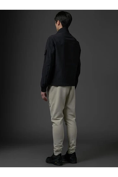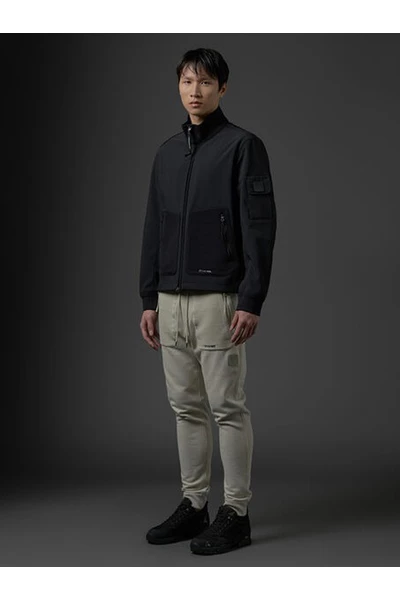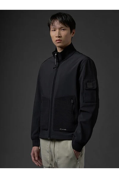 C.P. Bedrijf Jackets Zwart Neopreen Mesh-Pocket Jacket van C.P. Bedrijf met zwart, katoenen, mouwpatje, zip -knipbevestiging, hoge nek, lange mouwen en twee voorste mesh -zakken.