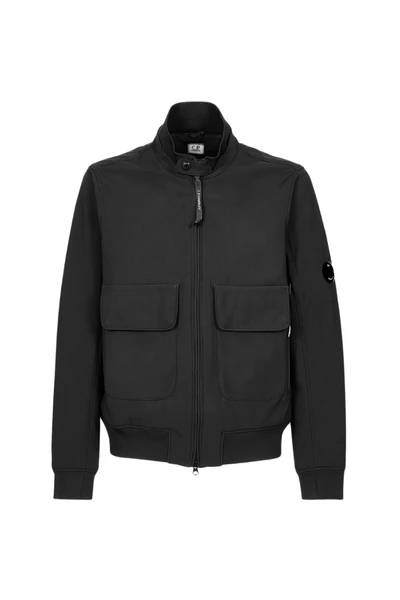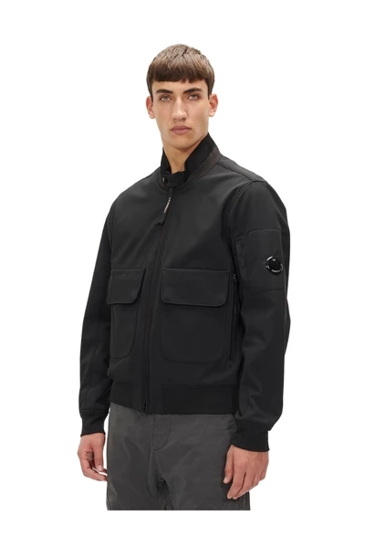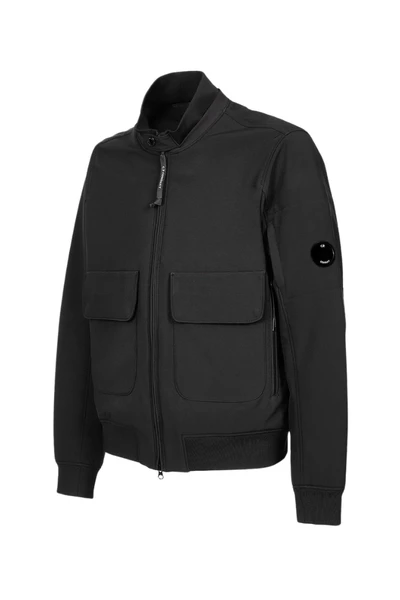 Korte jas met staande nek en geribbelde bodem. Het heeft voorzakken, afgesloten met volledige zip en C.P. Bedrijfslens op de tascinatie van de mouw. C.P. Shell-R is een softshell-stof waarvan de externe laag is gemaakt van gerecycled nylongaren en een kleine stap voorwaarts vertegenwoordigt in de richting van het beschermen van de beperkte middelen van onze planeet.