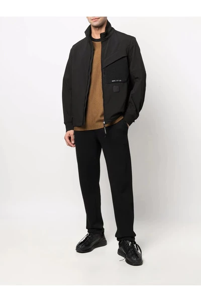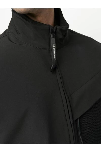 Opstaande kraag; Ritssluiting; Grote zak met rits aan de voorkant; Weerbestendig; Metropolis logo patch.