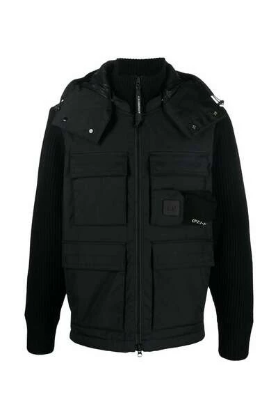 Zwart jack met mouwen van contrasterende stof. Vier opgestikte zakken aan de voorkant. Logo patch op de borst. Tweewegritssluiting vooraan. Hoge hals. Afneembare capuchon. Lange mouwen. Rechte zoom.